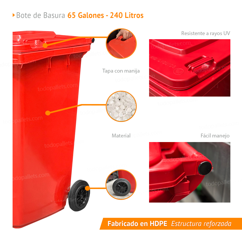 Bote de Basura 240 Lts. / 65 Galones color Rojo