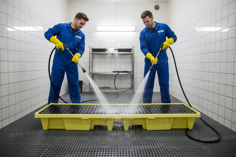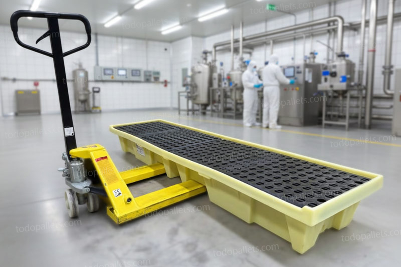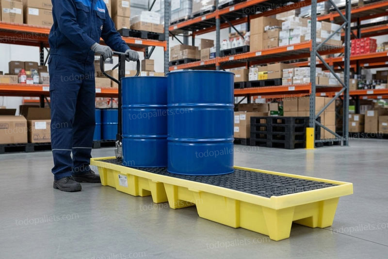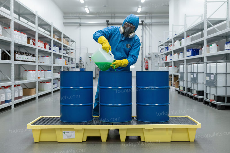 - Tarima de plastico antiderrames resistente a químicos altamente corrosivos.
